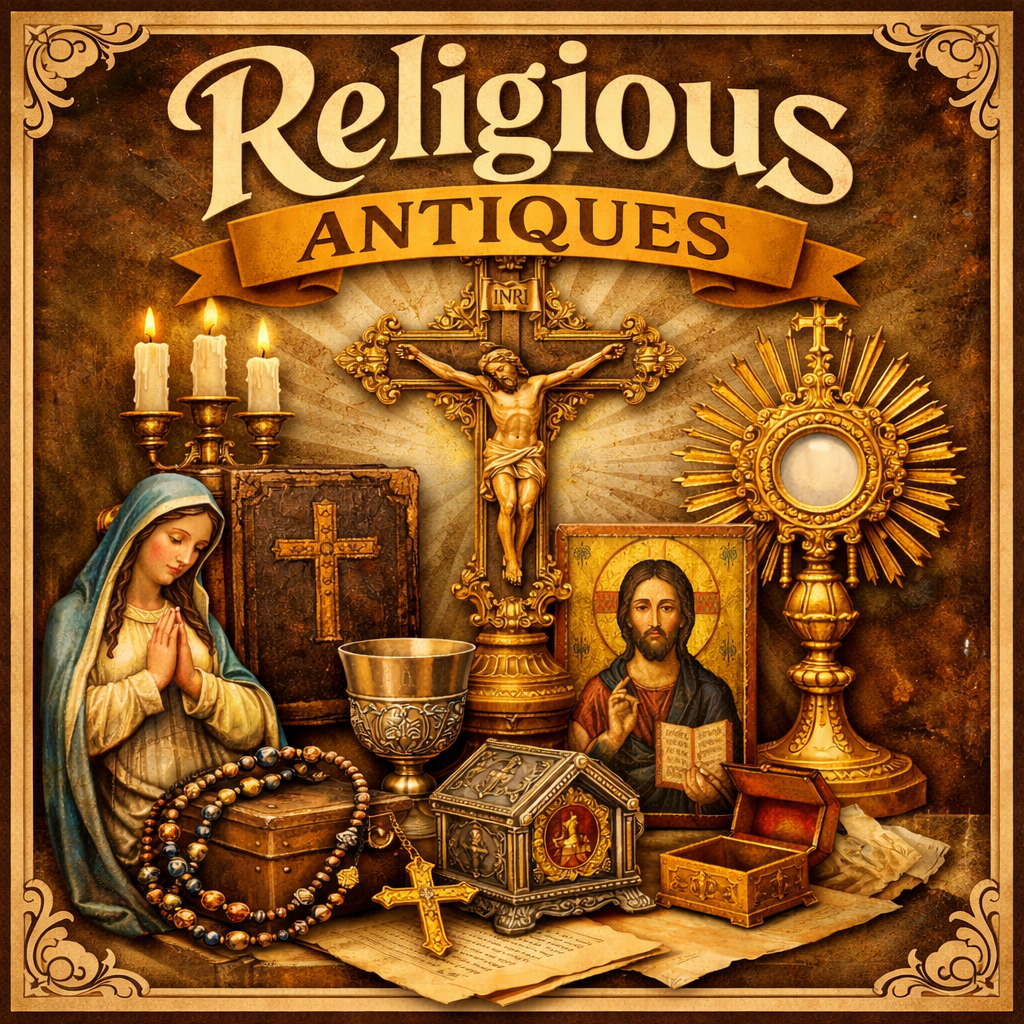 Our Religious Antiques & Artifacts collection features carefully curated pieces spanning centuries of devotion — from European ecclesiastical silver and hand-carved saints to Byzantine icons, reliquaries, rosaries, illuminated manuscripts, liturgical vestments, and devotional objects of profound spiritual significance.